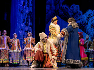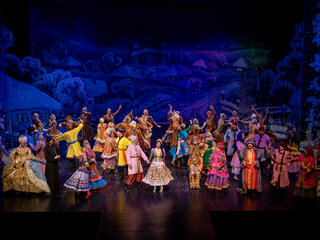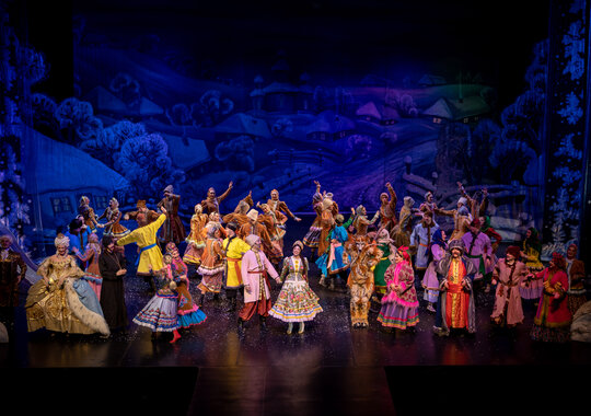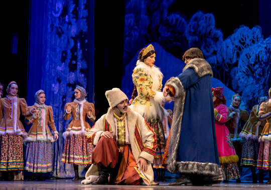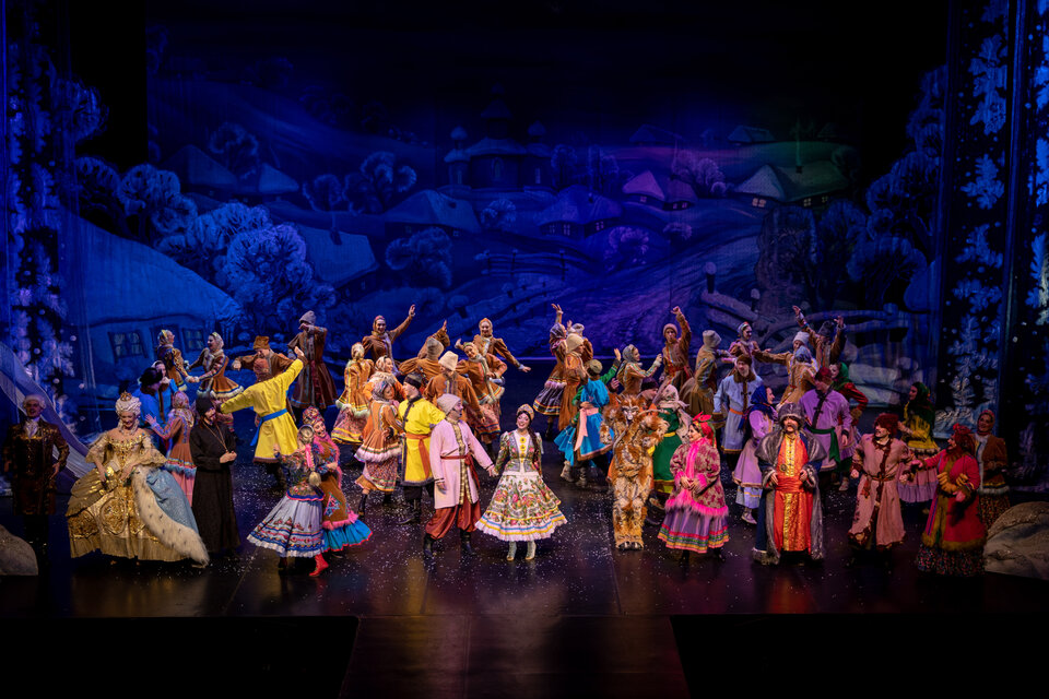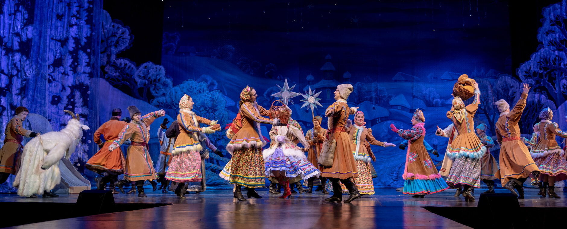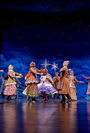 «Последний день перед Рождеством прошёл. Зимняя, ясная ночь наступила. Глянули звёзды. Месяц величаво поднялся на небо посветить добрым людям и всему миру, чтобы всем было весело колядовать и славить Христа... Тут через трубу одной хаты клубами повалился дым и пошёл тучею по небу, и вместе с дымом поднялась ведьма верхом на метле». Н. В. Гоголь, «Ночь перед Рождеством». Кто из нас не перечитывал замечательную повесть Гоголя, чтобы проникнуться духом любимого зимнего праздника?.. В сказочной феерии можно поводить козу, поиграть в снежки, послушать певучие песни и колядки — словом, с головой окунуться в атмосферу рождественской мистерии! В составе исполнителей возможны изменения.