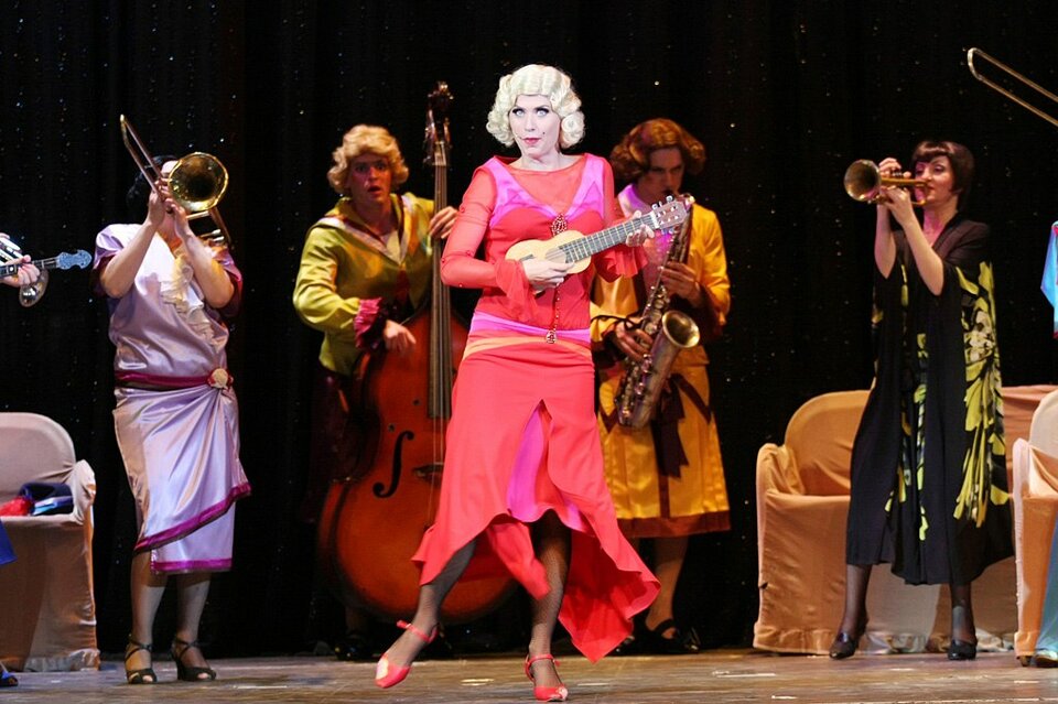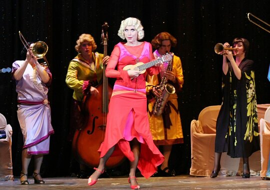 В финале маскарад раскрывается, Душечка признается, что любит Джо, хоть он далеко и не миллионер, а Джерри рассказывает «своему миллионеру», что не может стать его женой, ведь он не Дафна вовсе, а мужчина! Спектакль венчается фразой неунывающего Филдинга: «У каждого свои недостатки!».
