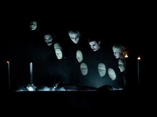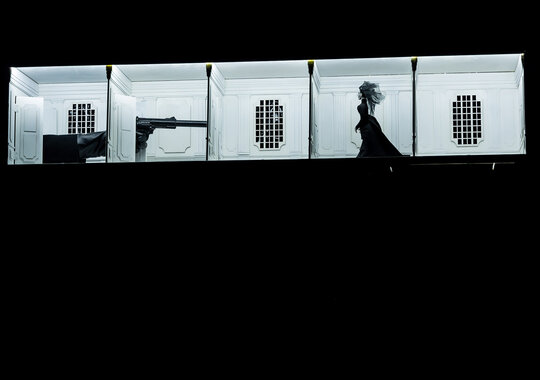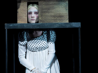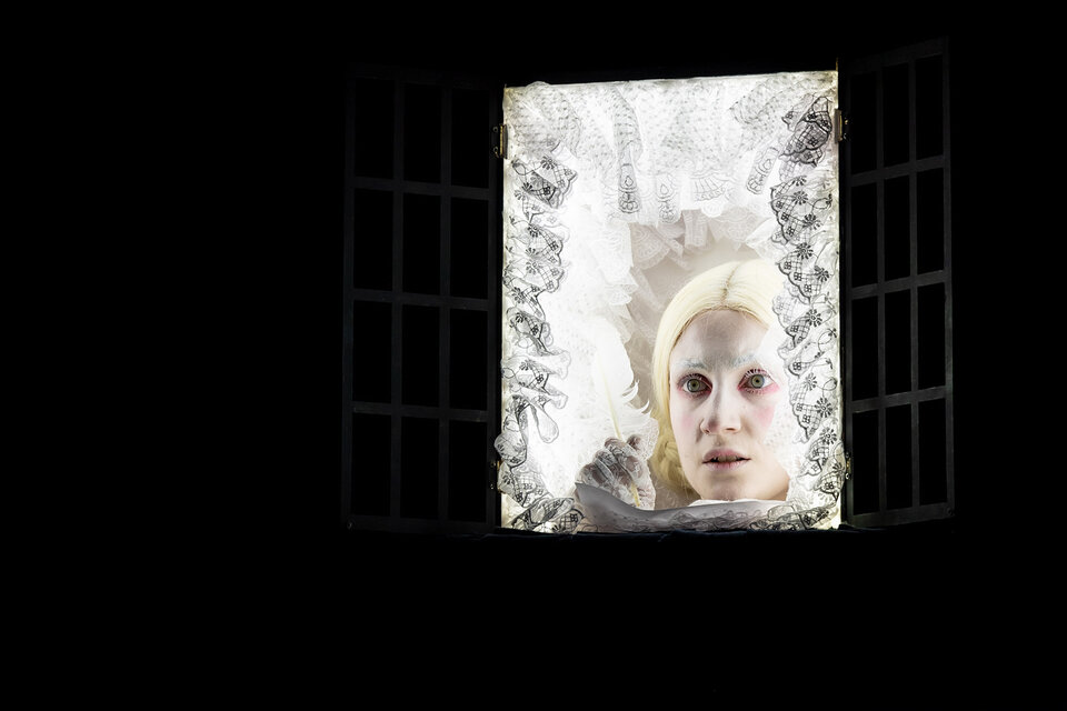 Можно не до конца разобраться в тонкостях карточной игры, но дело не в правилах. Германн, словно в квесте, блуждает по черно-белым улицам и мостам, коридорам и лестницам. Забыв об осторожности, он идет против своих принципов, походя ломая чужие судьбы. Подобные игры подразумевают двойников, и куклы как никто другой справляются с этой ролью, пугая и прельщая людей.