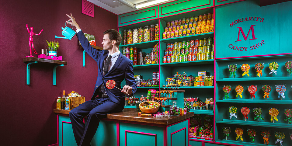 Во всех новостных сводках и на первых полосах газет — профессор Мориарти активировал свою бомбу-убийцу. Через час Лондон и окрестности взлетят на воздух! Из последних заметок Шерлока ясно, что разработка бомбы велась в секретной лаборатории, замаскированной под лавку сладостей. Неподалеку в центре как раз недавно открылась такая... Но где именно заложено взрывное устройство и как его обезвредить? Ищите любые зацепки и постарайтесь оправдать звание лучших детективов Скотленд-Ярда, ведь на кону тысячи жизней! Внимание! Для детей 8–14 лет квест проводится только при участии минимум 2 совершеннолетних игроков в команде. Возрастные ограничения : от 8 лет с родителями, от 14 без