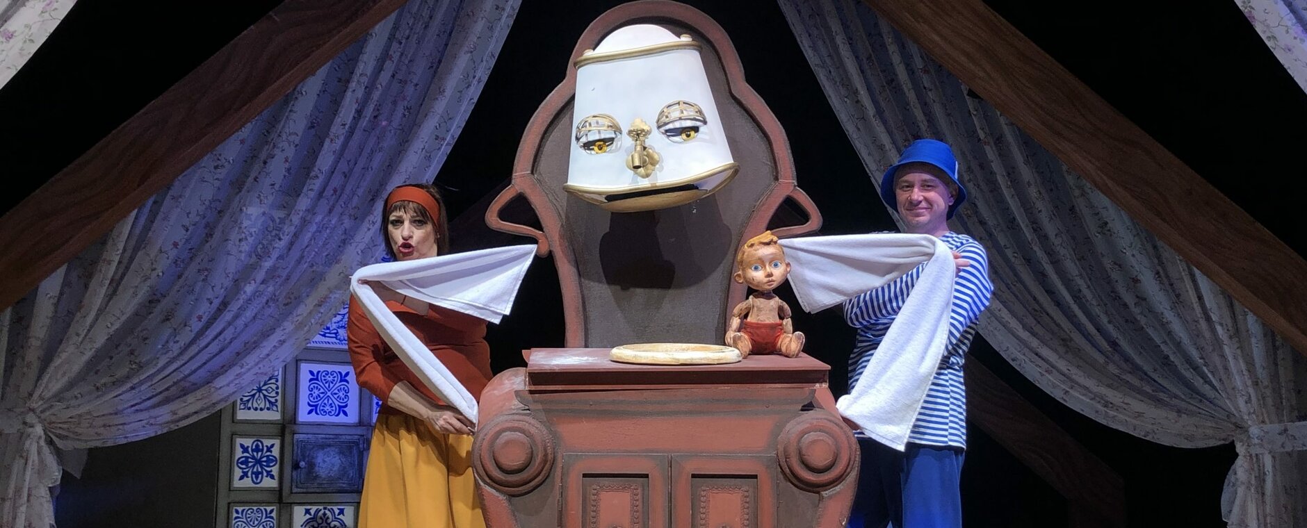 Увлечённые повествованием с пластинки, герои спектакля начинают, следуя за голосом, разыгрывать историю о мальчике-неряхе и оживляют старые предметы. Брызги воды и мыльные пузыри, а главное — добрый, но справедливый Мойдодыр не оставят шанса ни одному грязнуле. А чистота, как известно, — залог здоровья!