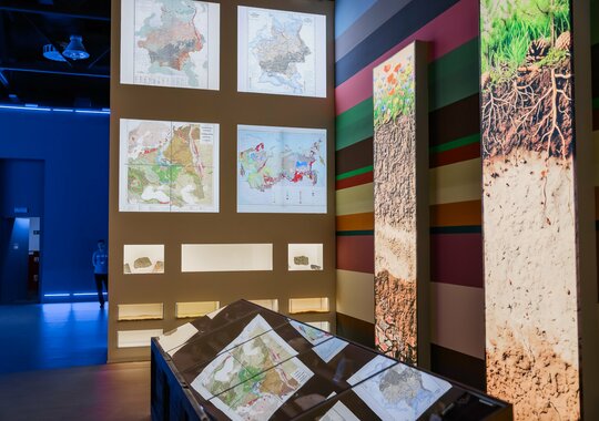 Выставка построена как большой рассказ о нашей стране, разделенная на восемь тематических залов. Входная галерея исторических карт позволяет «пролистать» карту России сквозь века. В зале, посвященном открытиям, оживает романтика экспедиций и дух первопроходцев. Гости выставки могут увидеть старинные карты, политические атласы, глобусы, морские, астрономические и геодезические инструменты. А «Класс географии» вернет посетителей в школьные годы.
