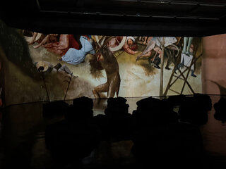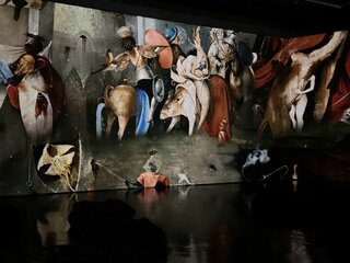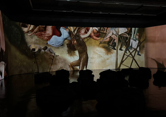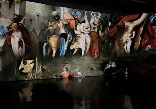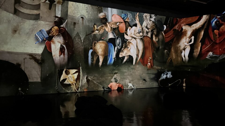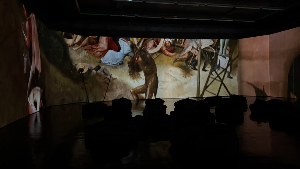 За этой визуальной насыщенностью скрывается разговор о человеке — его слабостях, искушениях и выборе. В мультимедийном формате работы Босха разворачиваются на всех стенах зала, позволяя рассмотреть композицию и заметить детали, которые обычно ускользают от взгляда.