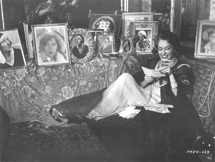 Машина, на которой он отправляется бездумно и бесцельно неизвестно куда, вдруг резко виляет в сторону (лопнула шина!) и влетает во двор особняка знаменитой в прошлом, но увядающей в настоящем кинозвезды Нормы Десмонд…