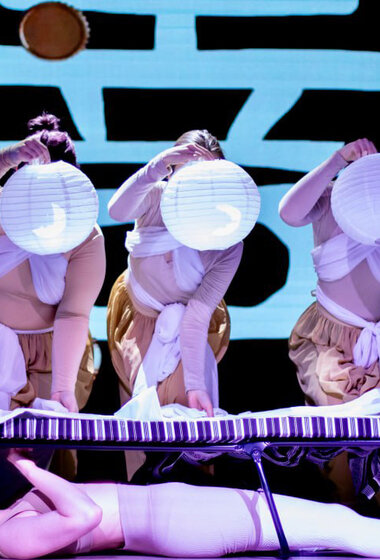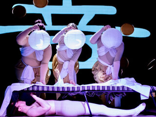Авторские зонги, музыкальные номера, монологи на немецком и стендап в сочетании с драмой в неокитайском стиле — всё это составляющие пьесы-притчи в экспериментальной постановке о том, как оставаться человеком в жестоких реалиях.