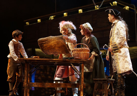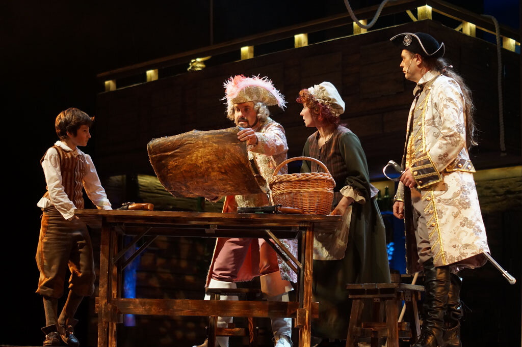 Пришло ваше время увидеть этот театральный бестселлер своими глазами! В головокружительные приключения вместе с вами отправятся известные актёры театра и кино, а также юные звезды — участники шоу «Голос. Дети» и «Детского Евровидения». Оригинальный сценарий по мотивам романа Стивенсона, потрясающие песни, живой вокал, захватывающие бои и весёлые пиратские танцы — всё это ваш любимый Остров Сокровищ!