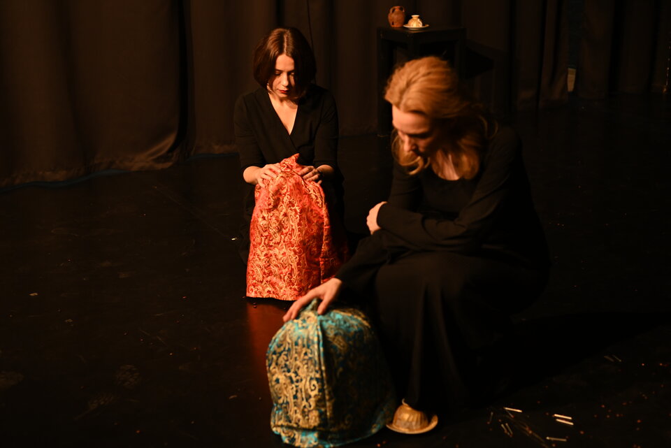 Подлинные истории рассказывают со сцены пять женщин, которые перевоплощаются то в одного, то в другого героя. Именно женщины являются носителями знания и хранительницами памяти. И единственное, что им остается, когда все мужчины перебиты, это рассказывать, погружая зрителя в историю.