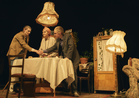 II акт, «Трое», основан на историях жизни трёх пенсионеров. Он — человек-праздник, она — пожилая буддистка, живущая с ещё более пожилым отцом-коммунистом. Героям предстоит рассказать папе, что после 60 любовь существует!