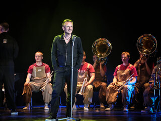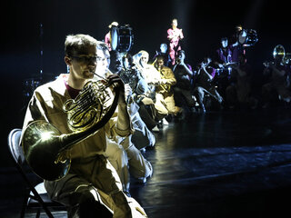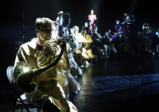 Виртуозно работая в синтезе различных жанров, 30 артистов соединяют слово, музыку, танец, костюмы и многое другое и наполняют своей невероятной энергией и мощным звучанием духовых инструментов зрительный зал и все пространство вокруг, подчеркивая настроение каждой исполняемой пьесы.