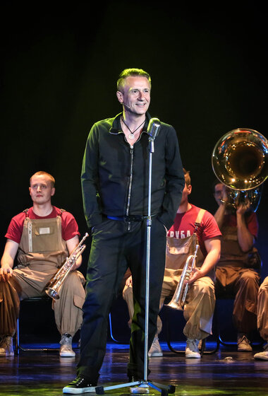 На сцене — Олег Меньшиков и его духовой оркестр, рассказывающий грустные и смешные истории, оркестр поющий, танцующий, солирующий и аккомпанирующий. Любой номер программы — это театральная миниатюра, которую воплощает группа «актеров» с инструментами.