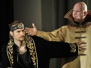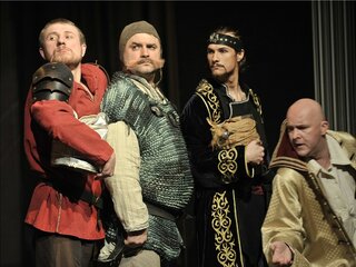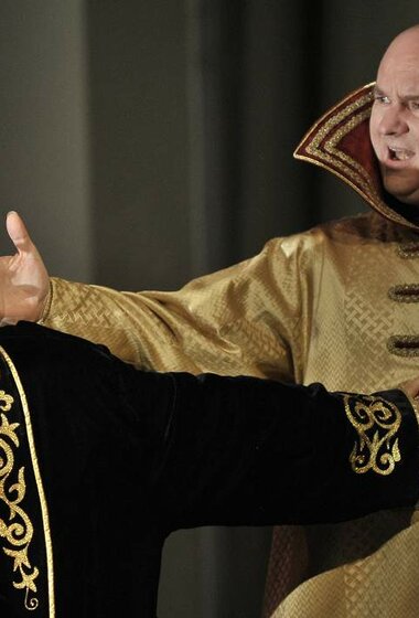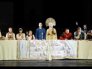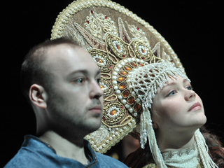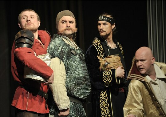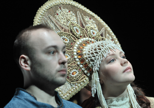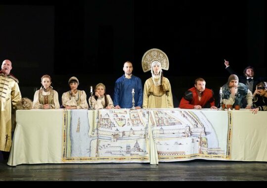 Эта работа — своеобразный «поклон» Петру Наумовичу: ведь на сцене его любимый Пушкин, разобранный очень подробно, с любовью и большой иронией. Да и сценическое пространство, в котором разыгрывается поэма — зрительское фойе Новой сцены — своего рода «цитата»: там же идет спектакль Петра Наумовича Фоменко «Триптих» по А. С. Пушкину. Михаил Крылов работает с пушкинским текстом в немного детской форме, где игра есть средство постижения мира. Эти мир «понарошку», мир накладных бород и нестрашных чудищ. Здесь метла становится богатырским конем, а ведро — рыцарским шлемом. Здесь всё условность, импровизация, хулиганство. Здесь много смеха — в первую очередь, над самими собой.