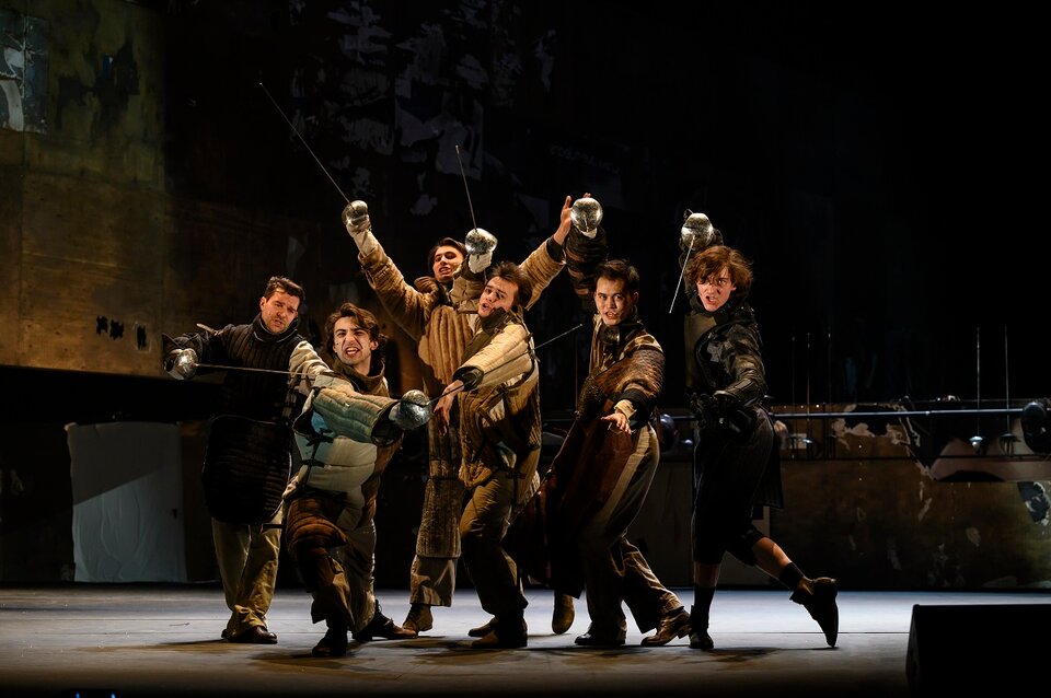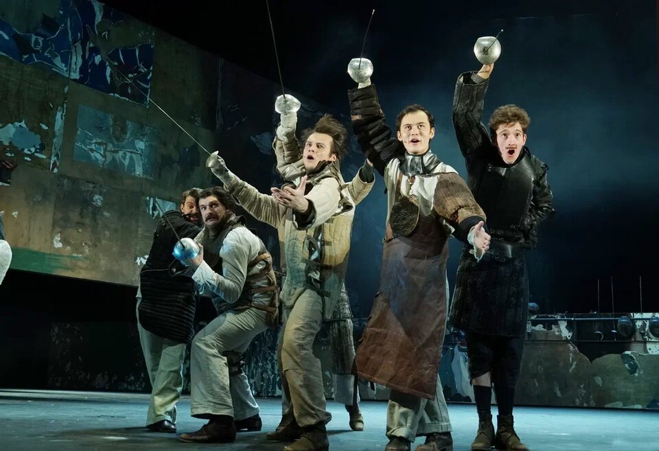 «Сирано де Бержерак» — это пьеса, в которой люди решают свои проблемы при помощи шпаги, поэтому у нас на сцене фехтуют. Но важно понимать, что Ростан писал своего «Сирано» через двести лет после жизни его реального прототипа, это XVII век, придуманный в конце века XIX, романтически преломленная реальность. И это даёт нам право, пользуясь теми правилами игры, что заложены драматургом, тоже сочинять свой мир, заново перепридумывать его. Мы берём историческое фехтование и размышляем, что такое фехтование сегодня, в XXI веке. Что это за способ общения — обмен уколами? Например, комментарии к постам в соцсетях — что это, как не словесный укол? Как это работает сейчас? В мире Сирано существует кодекс чести, есть правила, которые ты не можешь нарушить даже в поединке с соперником. Сейчас у нас принципиально нет никаких правил. Хотя я думаю, что и во времена Ростана их тоже особо уже не было и это как раз то, по чему он тосковал».
