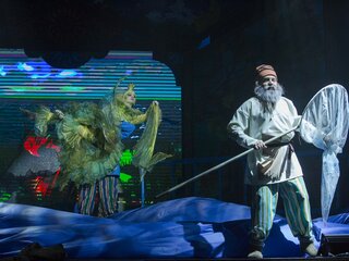 «Сказки Пушкина» — яркое музыкальное действо, в котором используются современные мультимедийные технологии. Главные герои спектакля, которые будут сопровождать зрителей в этом увлекательном путешествии, – наши старые знакомые из пушкинского «Лукоморья»: Дуб зелёный и Кот учёный. Они больше всего на свете любят рассказывать сказки…