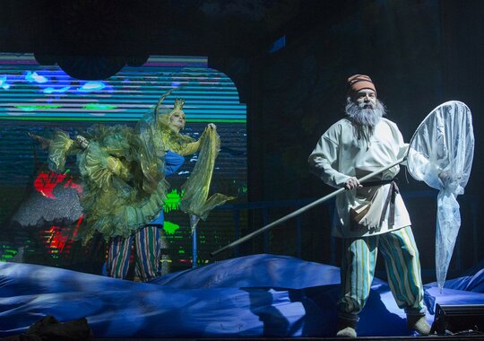 В основе спектакля – известные и всеми любимые сказки Александра Сергеевича Пушкина: «Сказка о попе и о работнике его Балде», «Сказка о рыбаке и рыбке», «Сказка о золотом петушке».