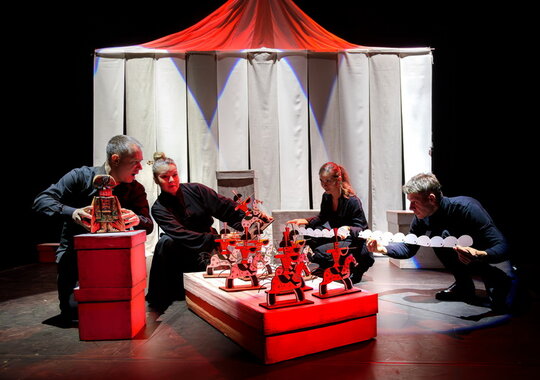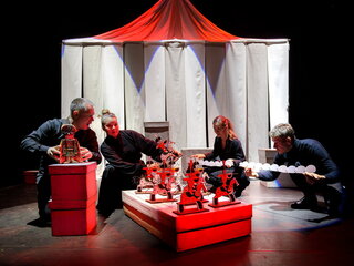 «Щелкунчика», действие которого происходит в парке развлечений, вы наверняка еще не видели: это интерактивный спектакль, в котором дети участвуют от начала до конца. Театр Т опирается на сказку Гофмана, но не следует ей дословно: сюжет представлен в виде ярмарки с аттракционами для зрителей. «Тир», «Комната смеха», «Комната страха» и «Авиатренажер для пилотов» – четыре аттракциона, в которых дети не только становятся героями «Щелкунчика», но и тренируют эмоциональный интеллект: учатся отстаивать свои границы, помогать близким, проговаривать тревоги и видеть разницу между внешним обликом и внутренним миром. В конце спектакля свет зажжется, мышиный король сдуется, а героев и зрителей ждут любовь, полеты по волшебной стране и город из конфет.