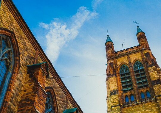 Так например, неторопливо гуляя по замечательному Вознесенскому переулку между знаменитой Тверской и Большой Никитской, можно неожиданно оказаться...на улице тихого английского города и за красивой оградой посреди уютного сада увидеть викторианскую базилику в готическом стиле с внушительной четырёхугольной башней и примыкающим двухэтажным домом. Почти мистическую способность англиканской церкви св. Андрея создавать вокруг себя особую атмосферу давно отметили многие москвичи и приезжие британцы.