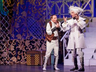 С невероятными усилиями и изобретательностью Труффальдино обслуживает обоих господ, попутно подталкивая их друг к другу. А заодно и себе находит невесту — прелестную служанку.