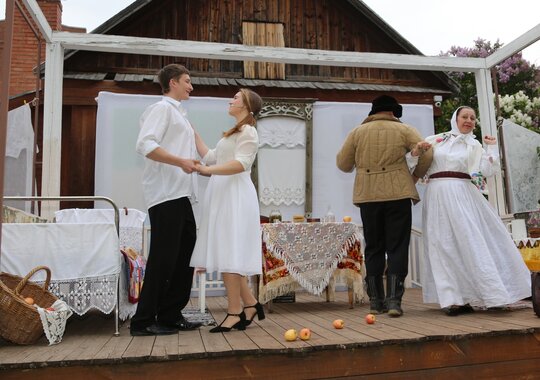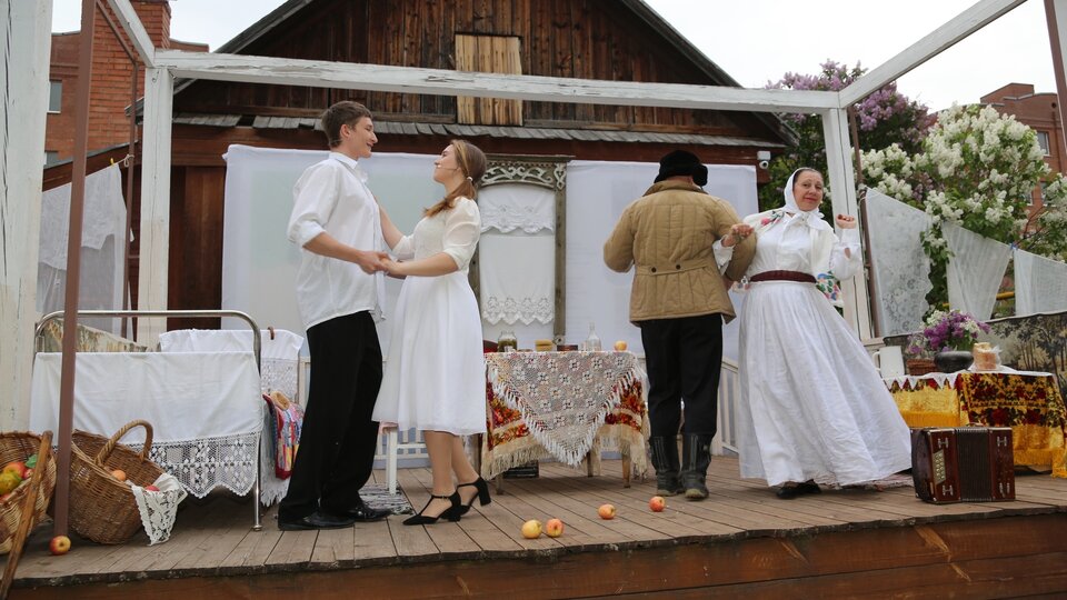 В день памяти Татьяны Ивановны Тимониной, театр «Секрет» играет спектакль «Яблочный спас» (пьеса Алексея Праслова, постановка Татьяны Тимониной).
